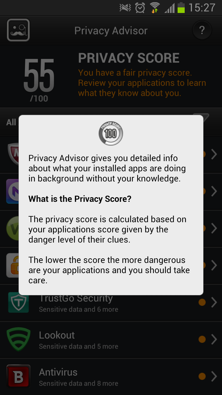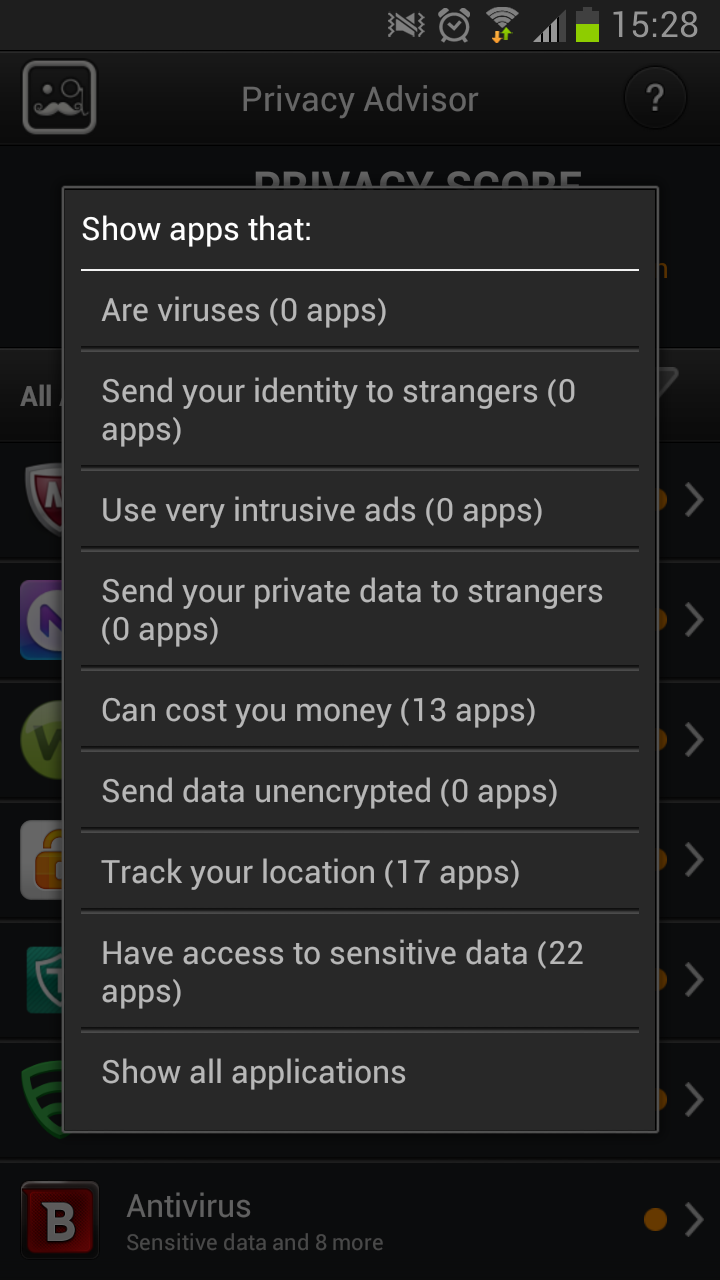 Curious to see how installed apps use, and possibly abuse, your personal information and treat your PRIVACY?! The Privacy Advisor is capable of giving you detailed info as to what your installed apps are doing in the background without your knowledge.