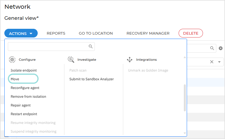 In the Network section, you can safely and efficiently move entities between locations with the help of context-aware messages tailored to your selected destination.