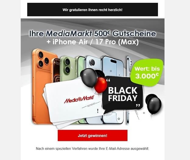 Deutschsprachige Verbraucher waren einer massiven Phishing- und Gewinnspielkampagne ausgesetzt, bei der sich die Betrüger als MediaMarkt, Amazon und TEMU ausgaben.
