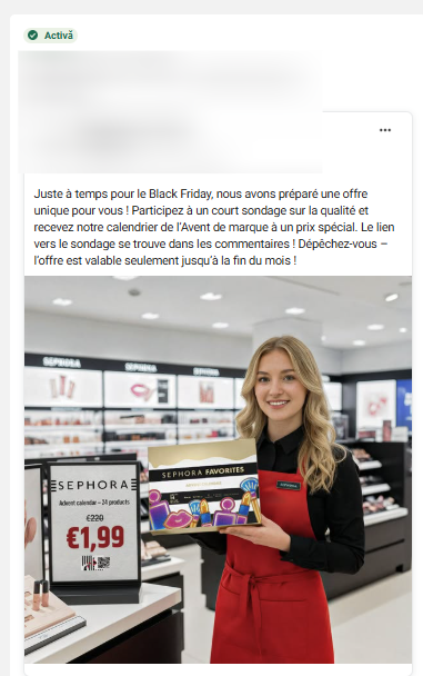 Nach einer Flut von Nutzermeldungen warnte Sephora Rumänien die Verbraucher öffentlich davor, dass es kein Gewinnspiel, keine Verlosung und keine Werbeaktion für Adventskalender gibt.