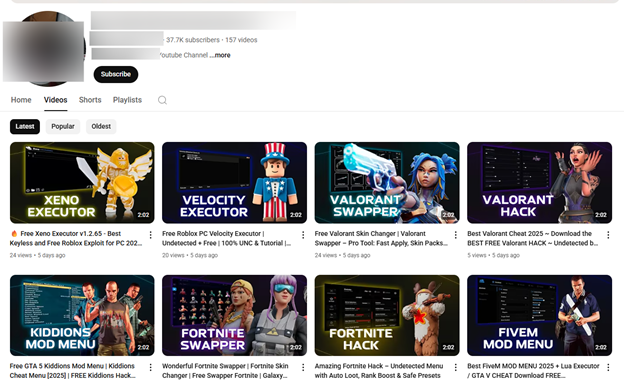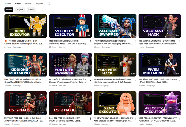 A growing number of YouTube channels are now promoting malicious “mods,” “hacks,” or “executors” for popular titles like Roblox, Valorant, CS2, and GTA V.