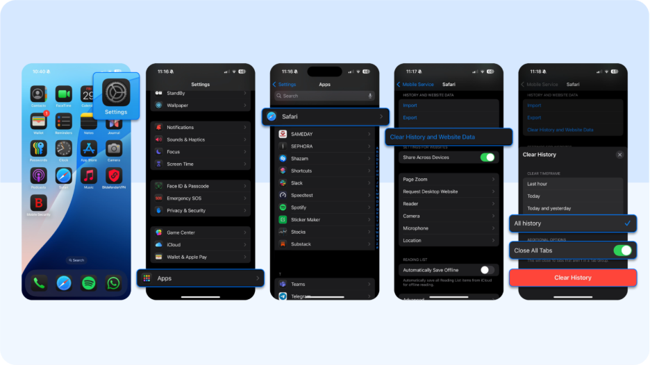 • Clear Safari history to wipe cookies, cache, and login states. Also, consider DNS filtering, so that every domain request your iPhone makes is checked against a database of known malicious addresses.