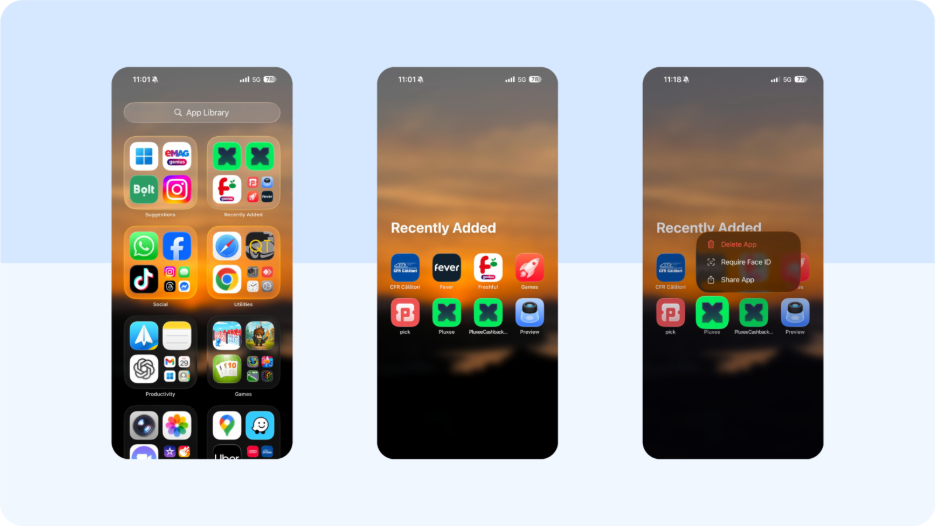 • Surface unknown apps. Open App Library (swipe past Home Screens) and check the “Recently Added” folder for anything unfamiliar. Delete any app you don’t recall installing.