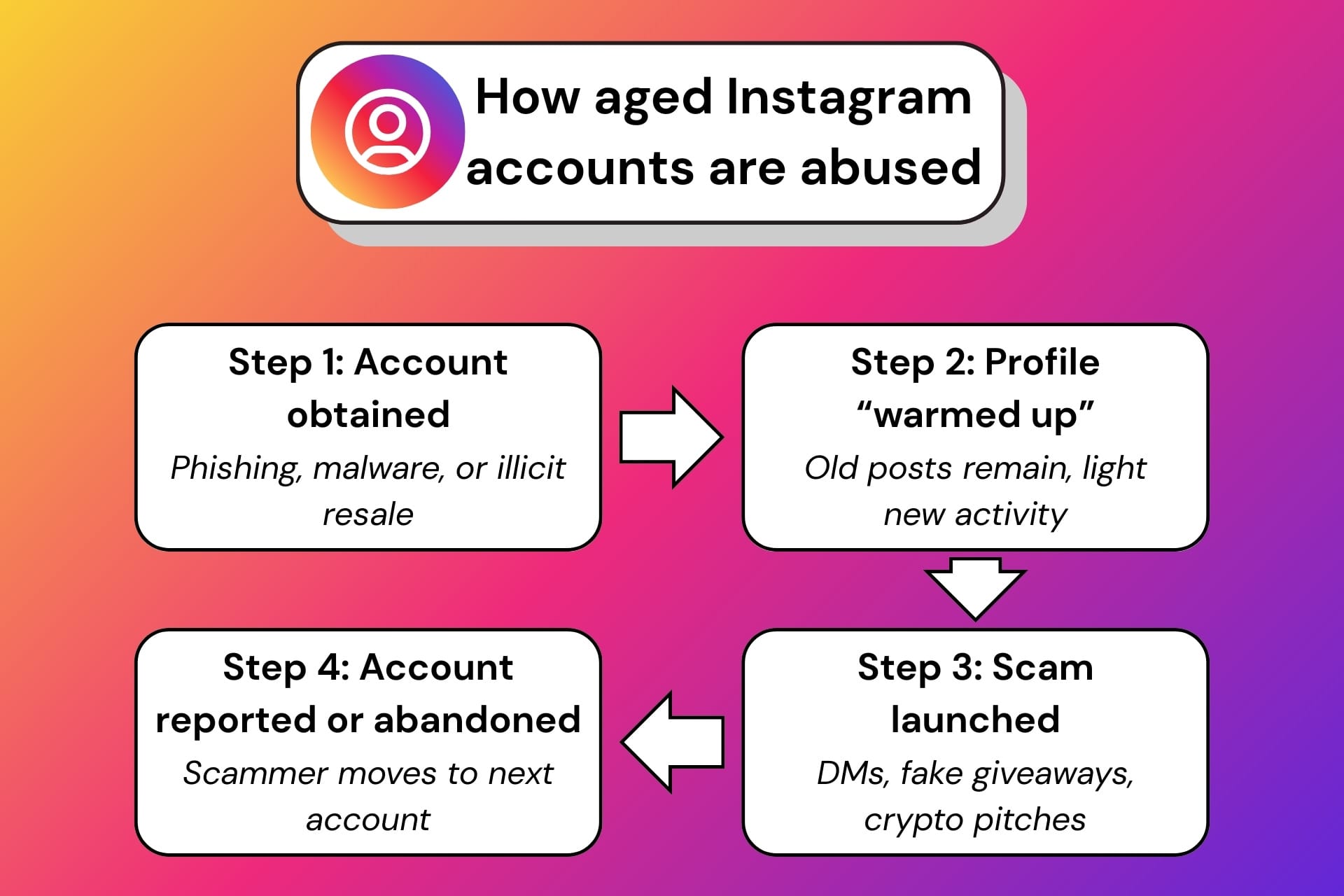 An explanation of how scammers steal or abuse long-standing Instagram profiles to exploit trust and carry out high-impact consumer fraud.