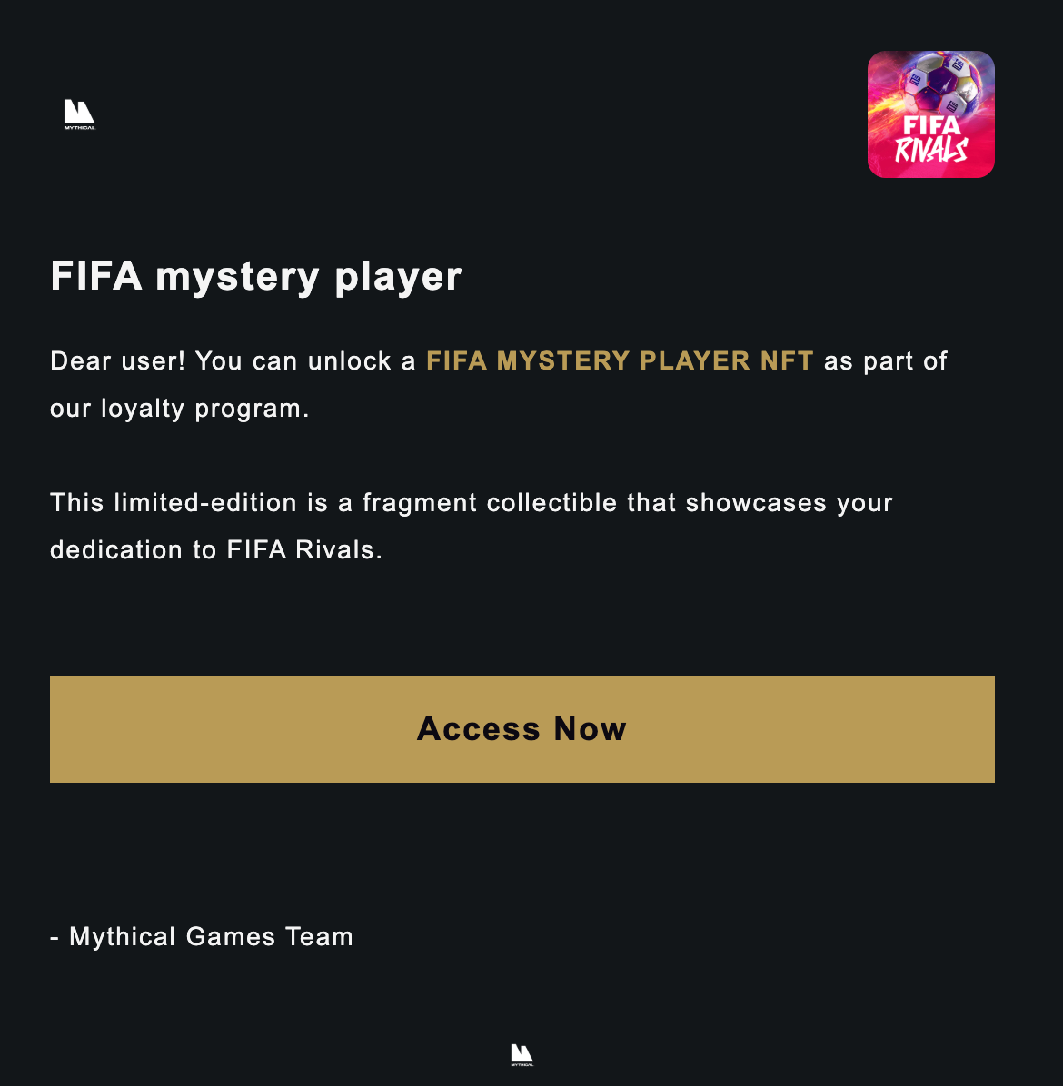 Within hours, more phishing attempts arrived, this time impersonating Mythical Games with a fabricated “FIFA Mystery Player NFT.” The strategy was clear: capitalize on recognizable brands and the ongoing NFT narrative to extract wallet credentials or trick users into authorizing malicious transactions. Curiously enough, the Mythical Games email came from the same spoofed PepsiCo email address.