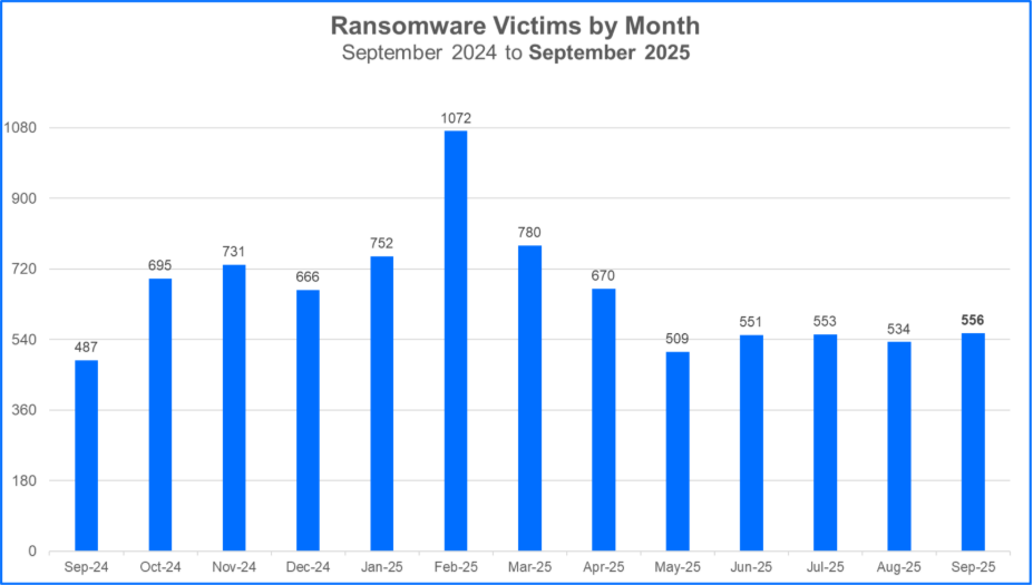 For this month's report, we analyzed data from September 1 to September 30 and recorded a total of 556 claimed ransomware victims.