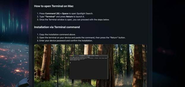 • macOS variant: used a ClickFix-style technique, urging readers to run a terminal command that decoded and fetched a second-stage MacStealer payload.