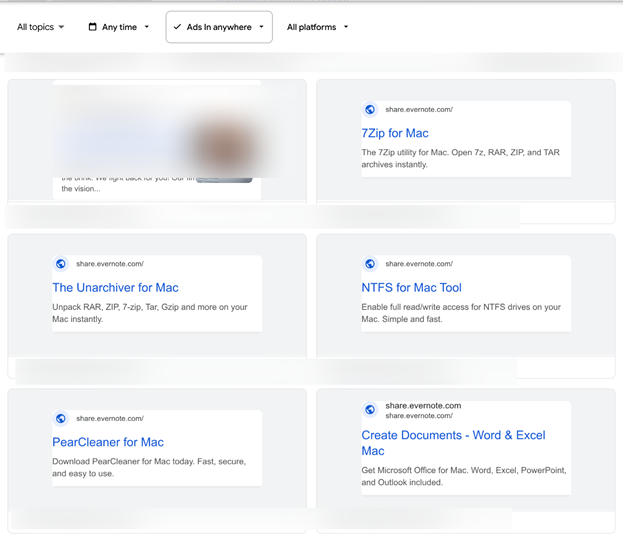 Bitdefender Labs researcher Ionut Baltariu has discovered that compromised Google Ads accounts are currently distributing malicious ads impersonating well-known software tools. The ads appear when users search for legitimate products and redirect victims to shared Evernote pages containing a dangerous Terminal command.