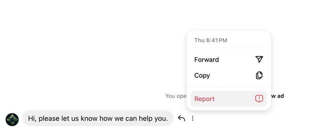 Many takeovers start with a fake “partnership offer” or “verification” link. Report these to Instagram to cut off the attacker’s vector. Open the message thread that contains the suspicious DM, tap and hold the specific message (or tap the “i” in the top-right corner), then select Report and the reason behind. Make sure those malicious actors get blocked after.