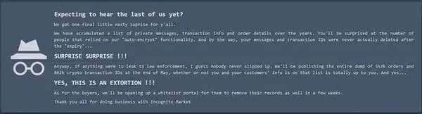 In March 2024, Lin abruptly shut down Incognito Market without warning, stealing at least US $1 million in user deposits. He then attempted to extort users by threatening to publish their transaction histories and cryptocurrency addresses, writing "YES, THIS IS AN EXTORTION!!!" on the site.