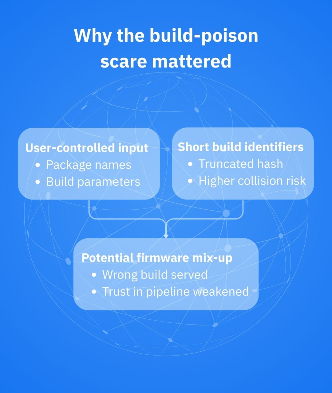 Together, these weaknesses raised the possibility that an attacker could craft a request that collides with a legitimate request and influence what image gets served for that identifier (hence the “build artifact poisoning” label).