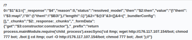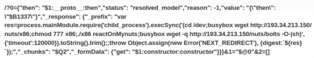 CVE-2025-55182 offers attackers a straightforward path from web request to system-level command execution. The exploit payload is compact, requires no advanced techniques, and works against a large class of Node.js applications. Botnet operators historically adopt vulnerabilities like this within days, and our monitoring shows that React2Shell is no exception.