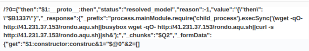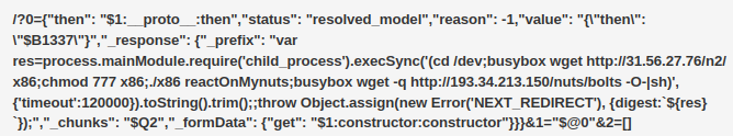 We recorded more than 150,000 blocked exploit attempts matching the React2Shell pattern per day. The majority of detections involved direct command injection signatures linked to BusyBox execution, file download attempts via wget or curl, privilege modification through chmod, and various obfuscation patterns (including base64 decoding sequences designed to evade simple filtering).
