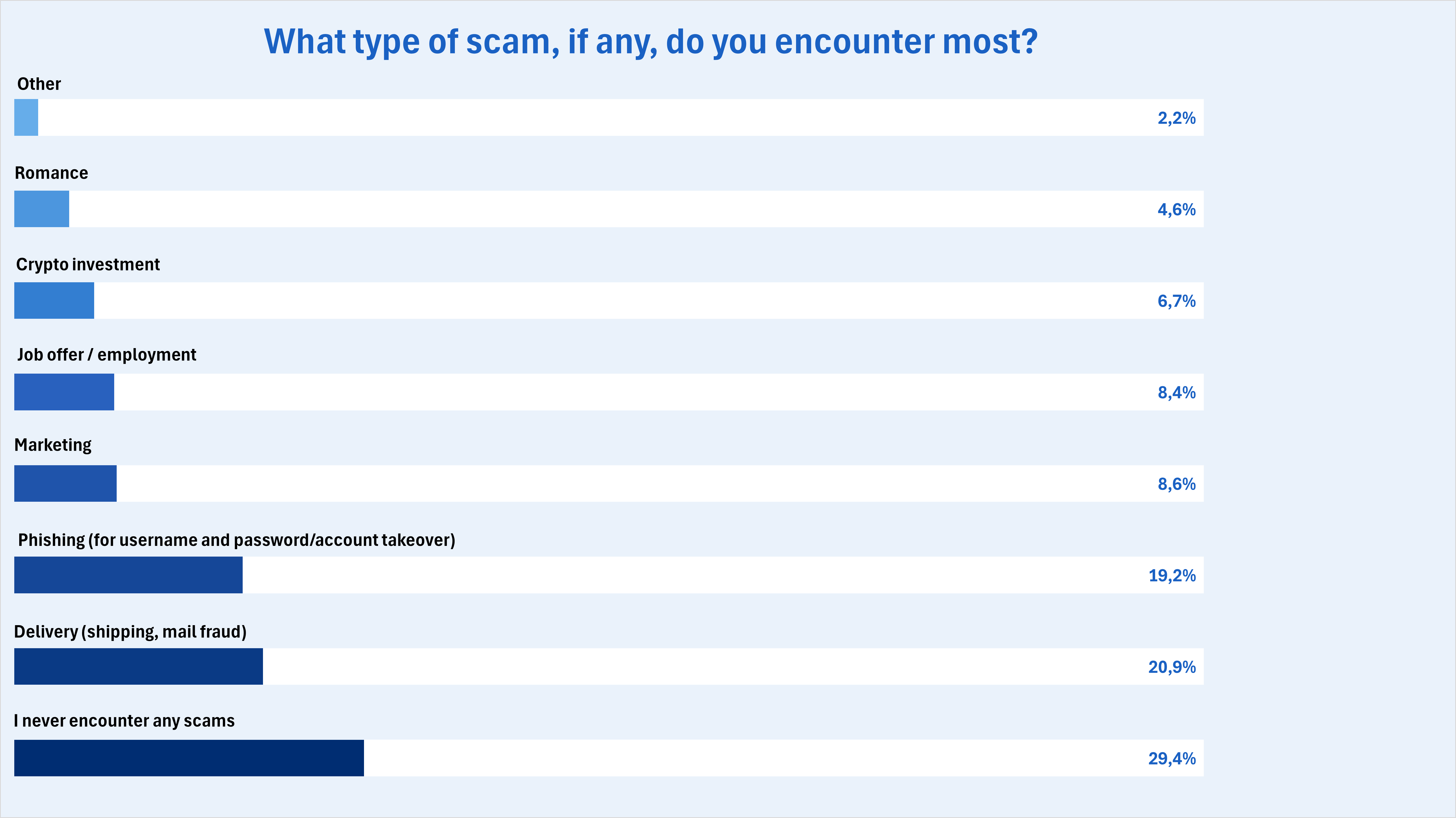 Al preguntar si habían sido víctimas de una estafa en el último año, el 14 % (1 de cada 7) de los consumidores encuestados respondió que sí, mientras que el 4 % dijo no estar seguro.