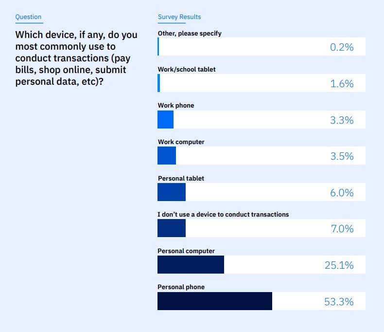 Alrededor del 53% de los encuestados en la Encuesta de Ciberseguridad del Consumidor de Bitdefender 2025 afirma que realiza operaciones bancarias, compras e interacciones en línea desde su teléfono.