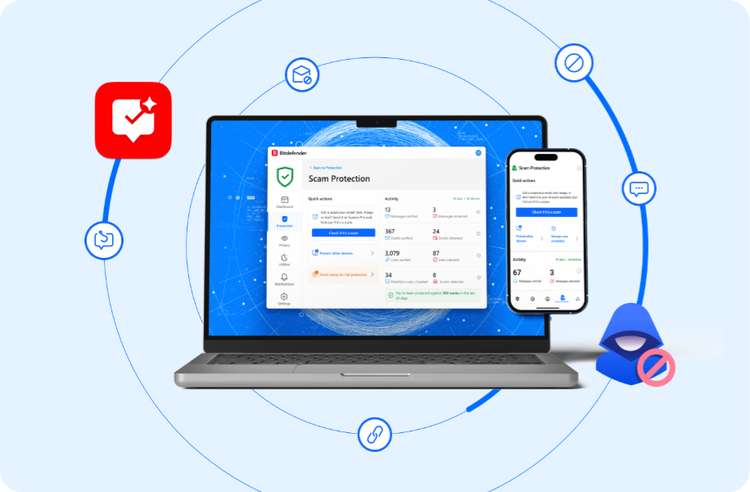Les fraudes en ligne sont conçues pour inciter les gens à donner de l'argent ou d'autres biens de valeur et à divulguer des informations sensibles les concernant. Scam Protection est la réponse apportée par Bitdefender à ce phénomène croissant. Une puissante plateforme qui regroupe au même endroit de multiples fonctionnalités anti-fraude nouvellement développées.