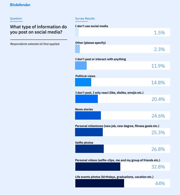 În același timp, mulți consumatori facilitează fără să știe aceste amenințări prin divulgarea de detalii personale online sau prin lipsa utilizării unor instrumente de securitate de bază — exact tipurile de comportamente evidențiate în sondajul Bitdefender.