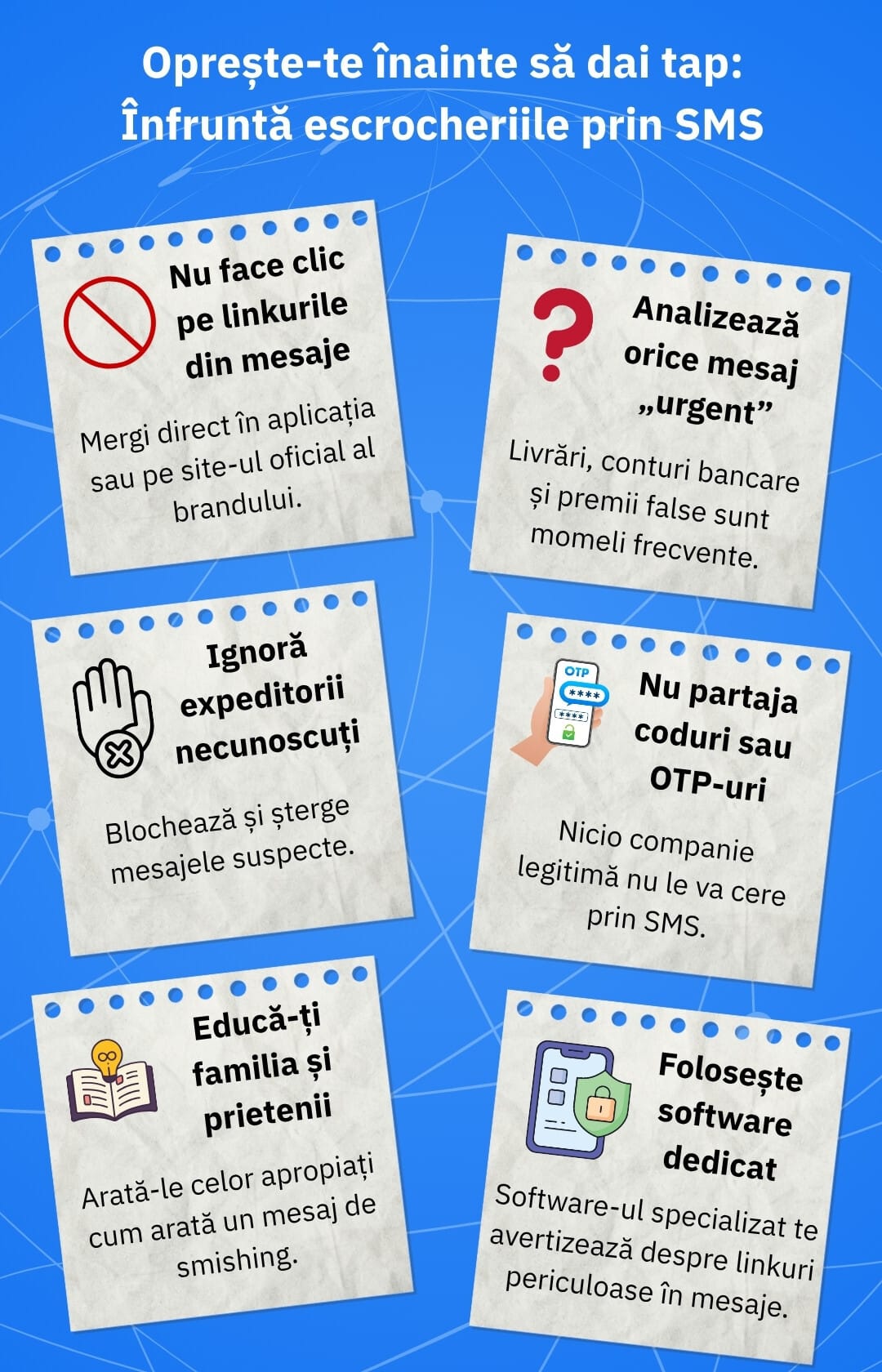 Smishing (sau phishing prin SMS) este în plină expansiune. Datele Bitdefender arată că 10% dintre utilizatorii din SUA au primit cel puțin un SMS fraudulos în ultimele două luni. Studiul Pew confirmă această tendință: majoritatea americanilor primesc mesaje false săptămânal, indiferent de vârstă sau ocupație.