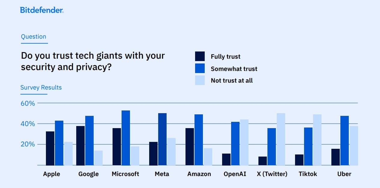 Sondajului Bitdefender 2025 Privind Securitatea Cibernetică a Consumatorilor arată că, deși utilizatorii de internet se bazează masiv pe platformele mari pentru comunicare, cumpărături și servicii financiare, temerile tot mai mari legate de dominația Big Tech subminează încrederea în serviciile digitale.