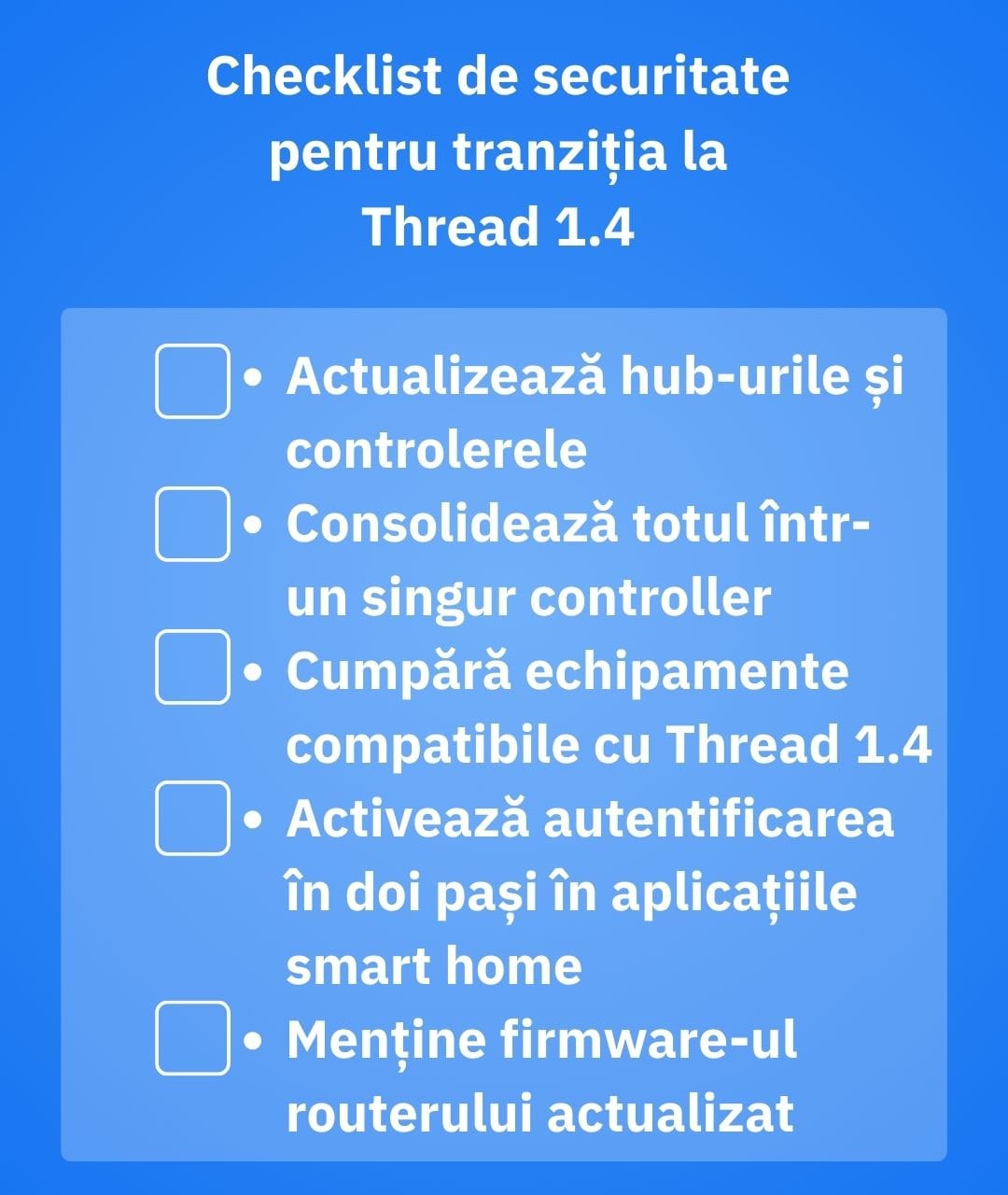 Criptografia Thread este solidă — însă, de cele mai multe ori, problema o reprezintă postura generală de securitate a casei inteligente. De aceea este esențial să o consolidezi acum, în timp ce Thread 1.4 ajunge treptat prin actualizări de firmware.