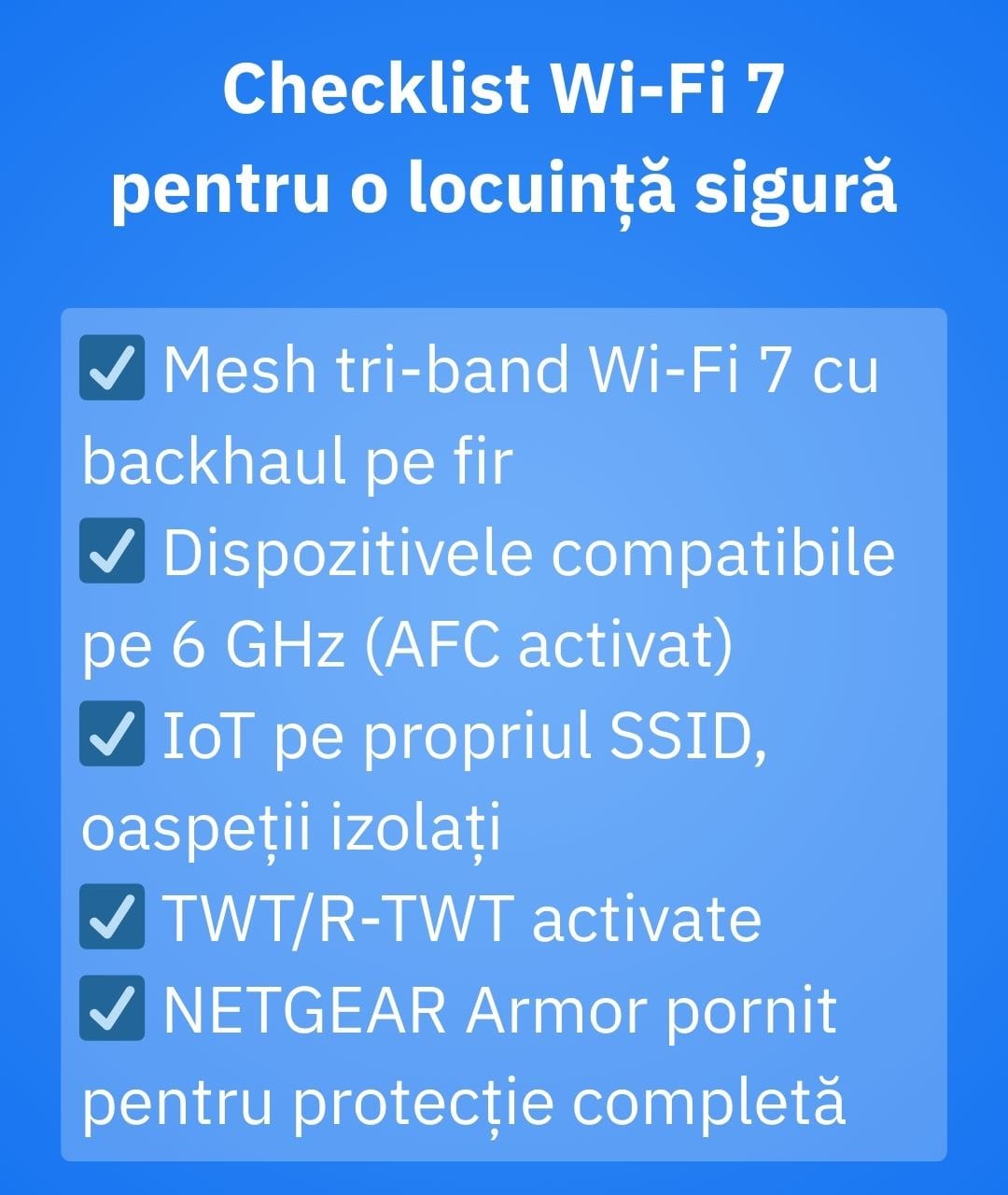 Combinat cu o topologie mesh bine gândită, segmentare corectă a SSID-urilor și o protecție avansată precum NETGEAR Armor, Wi-Fi 7 poate transforma o casă suprasolicitată într-un ecosistem conectat, sigur și ultra-rapid.