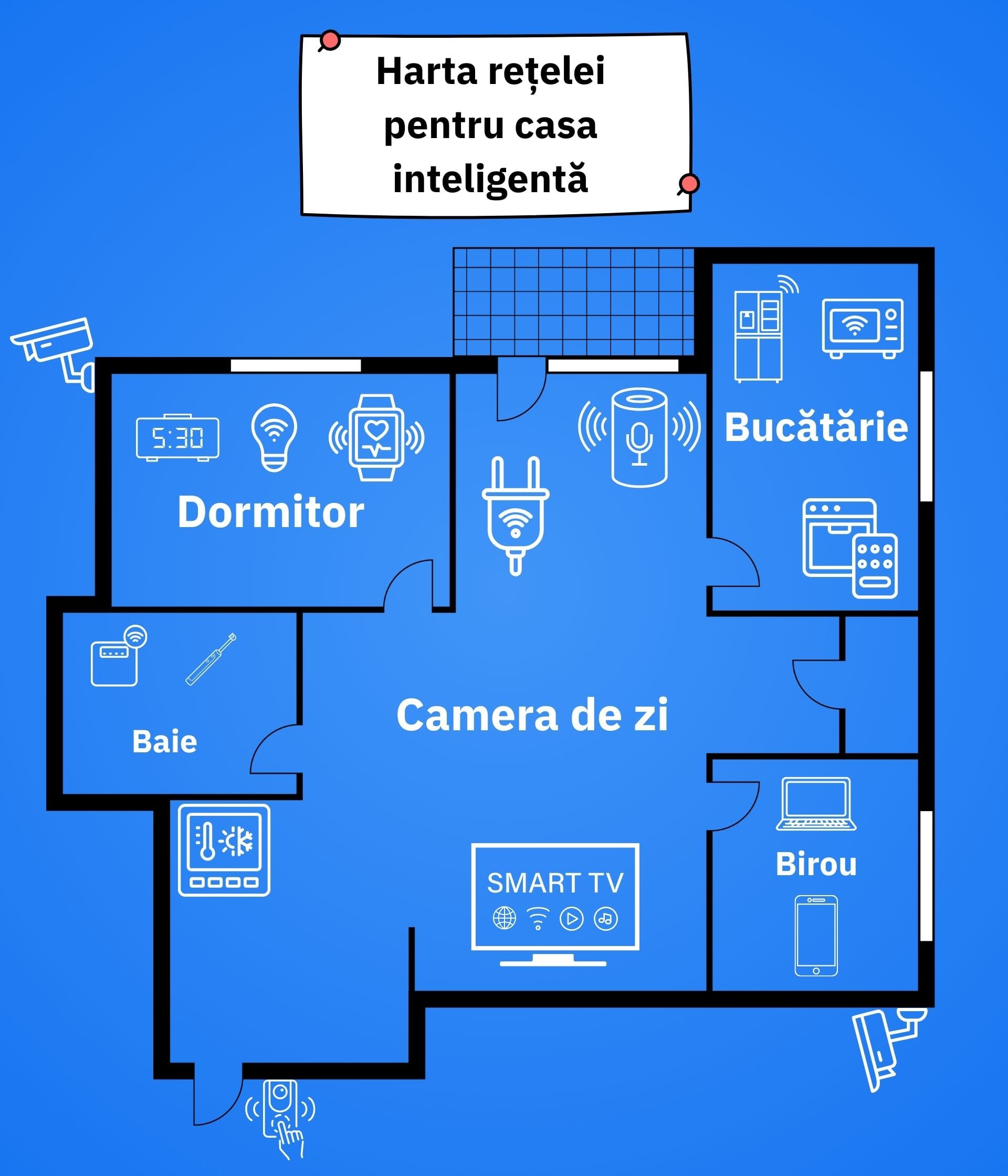 Fă o listă cu camerele, numărul de dispozitive și modul de utilizare (apeluri video, streaming 4K, camere, boxe inteligente). Într-un design de rețea densă, contează cererea simultană, nu viteza teoretică maximă. Este o abordare folosită în mediul enterprise și funcționează excelent și acasă.