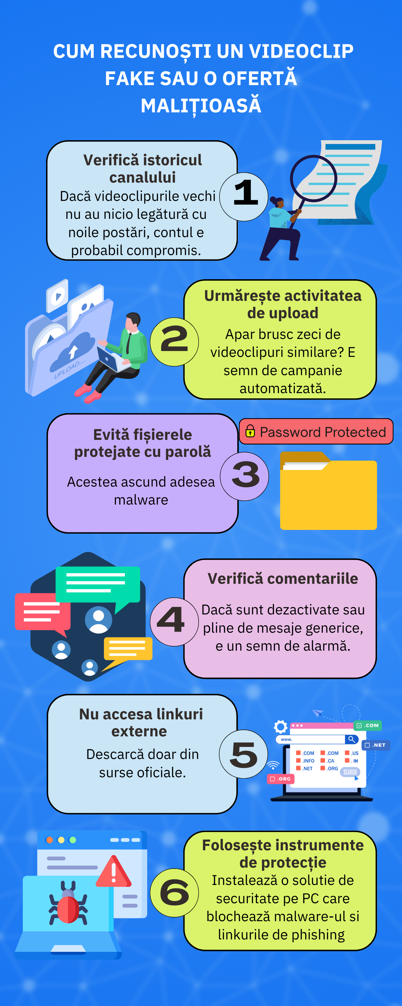 Această tendință marchează o schimbare îngrijorătoare: infractorii nu mai creează conturi noi pentru a-și distribui campaniile. În schimb, preiau conturi existente de YouTube și alte platforme sociale — adesea cu mulți urmăritori — pentru a câștiga instant credibilitate și vizibilitate.