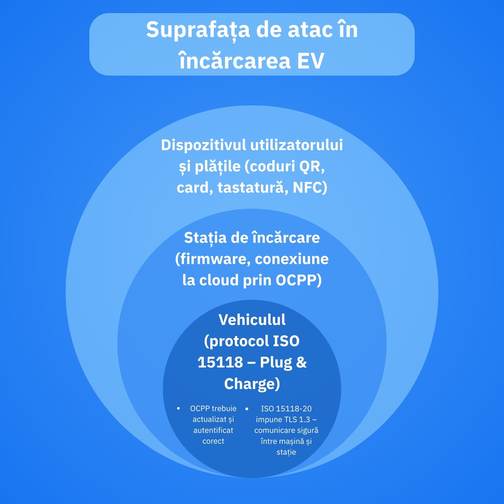 Rețelele de încărcare pentru vehicule electrice se extind rapid, dar și riscurile odată cu ele. Fiecare punct de încărcare implică o combinație de aplicații de plată, coduri QR, sisteme cloud și protocoale de comunicare între mașină și stație.