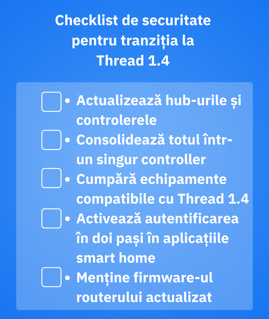 Menține hub-urile actualizate, adaugă dispozitive din același controller și optează pentru echipamente clar compatibile 1.4. O rețea Thread mai unificată, mai rapidă, fiabilă și ușor de securizat este la doar un pas; când anume va deveni noul standard e doar o chestiune de timp.